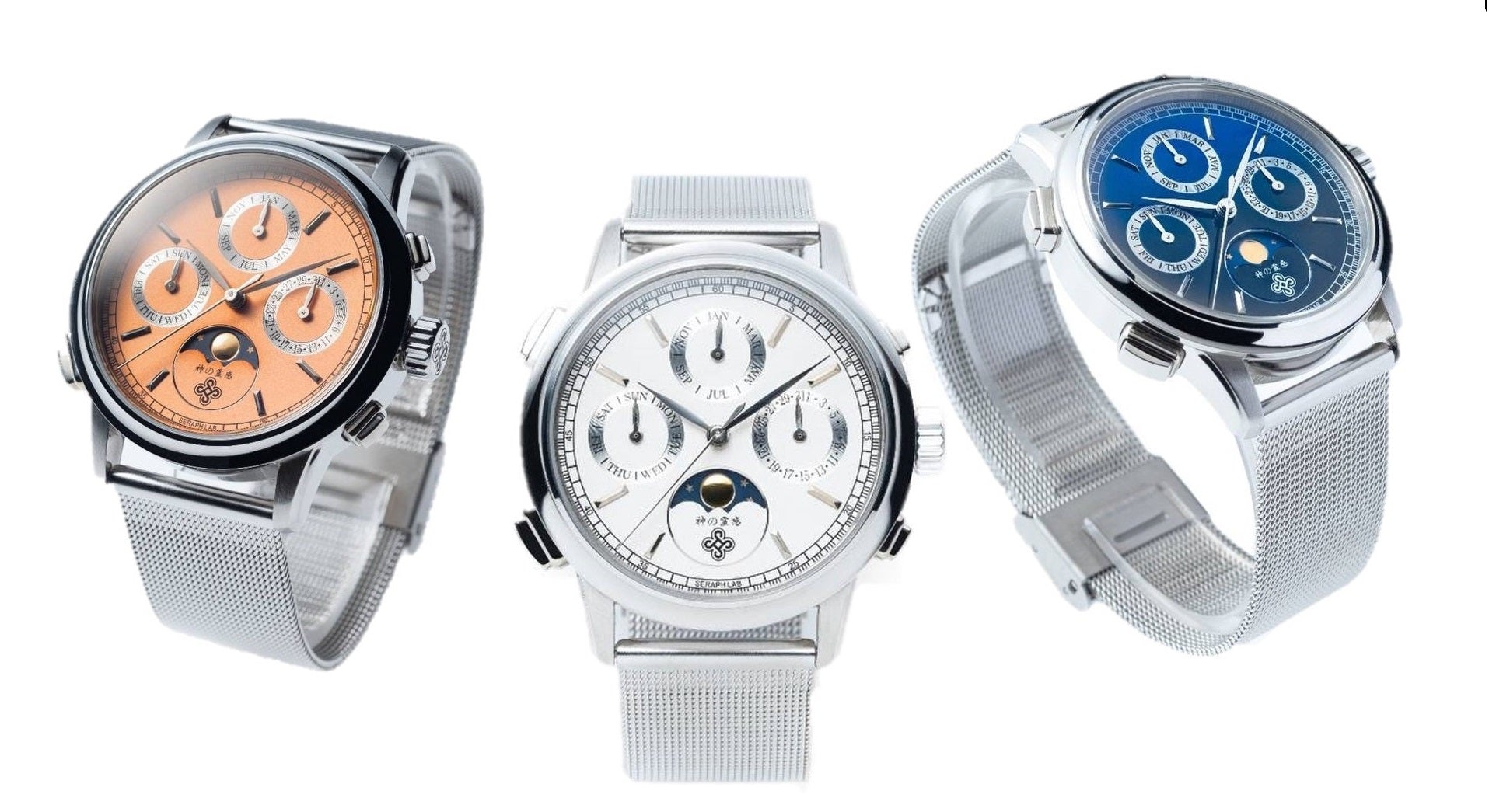 Our watch are created from Miyota cal.9015 automatic movement. Miyota is a premium japanese workhorse movement beating at 4Hz which is comparable in accuracy and reliability of Swiss counterparts. With a in-house developed module, this workhorse movement was upgraded with a 29.5 days moon phase and triple date functionality